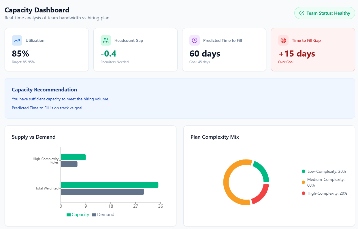 What makes this worse is that capacity is often discussed at a team level, not at a human level. Five recruiters does not mean five equal workloads. PTO, role complexity, sourcing intensity, and stakeholder maturity all matter. Ignoring those differences creates plans that look fair on paper and feel brutal in practice.
